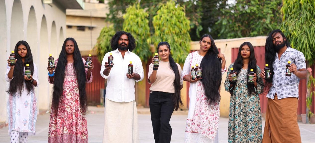 Most commercial oils are 90% mineral oil and perfume. We do things differently. Our oil is a potent infusion of Bhringraj, Amla, Aloe Vera, and Daswala roots, boiled to perfection to extract their medicinal properties.